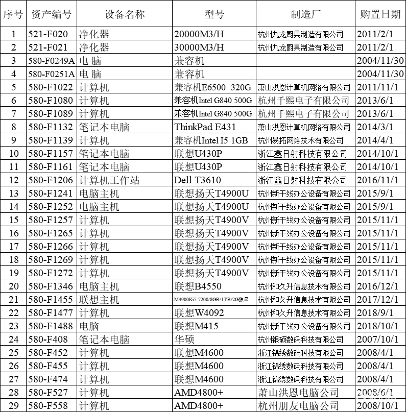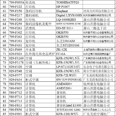 浙江杭州某国企9月份机器设备处置网络竞价会