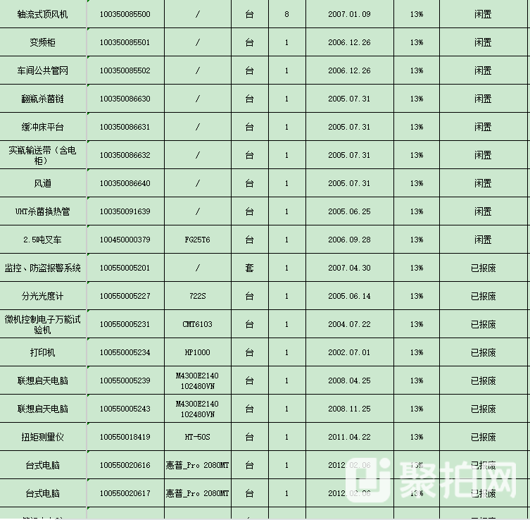 杭州某企业生产类设备网络竞价会