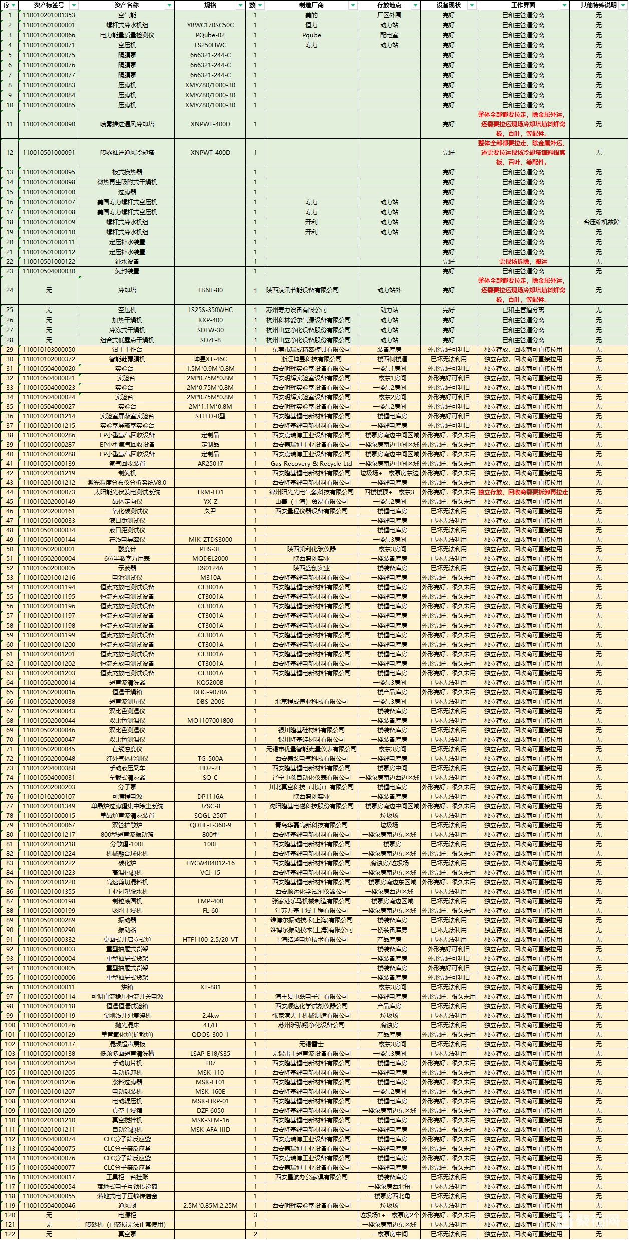 陕西西安某企业厂务动力等闲置设备处置网络竞价会