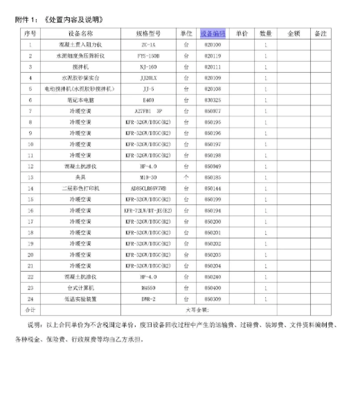 应委托方的要求,河北中废通拍卖有限公司定于2026年04月02日 15:00:00时在河北中废通拍卖有限公司的“聚拍网”在线竞价系统对混凝土贯入阻力仪、水泥细度负压筛析、冷暖空调仪、台式计算机等理化检测设备及办公设备1批物资进行公开竞价处置(不接受现场竞拍)。联系电话:18032806145